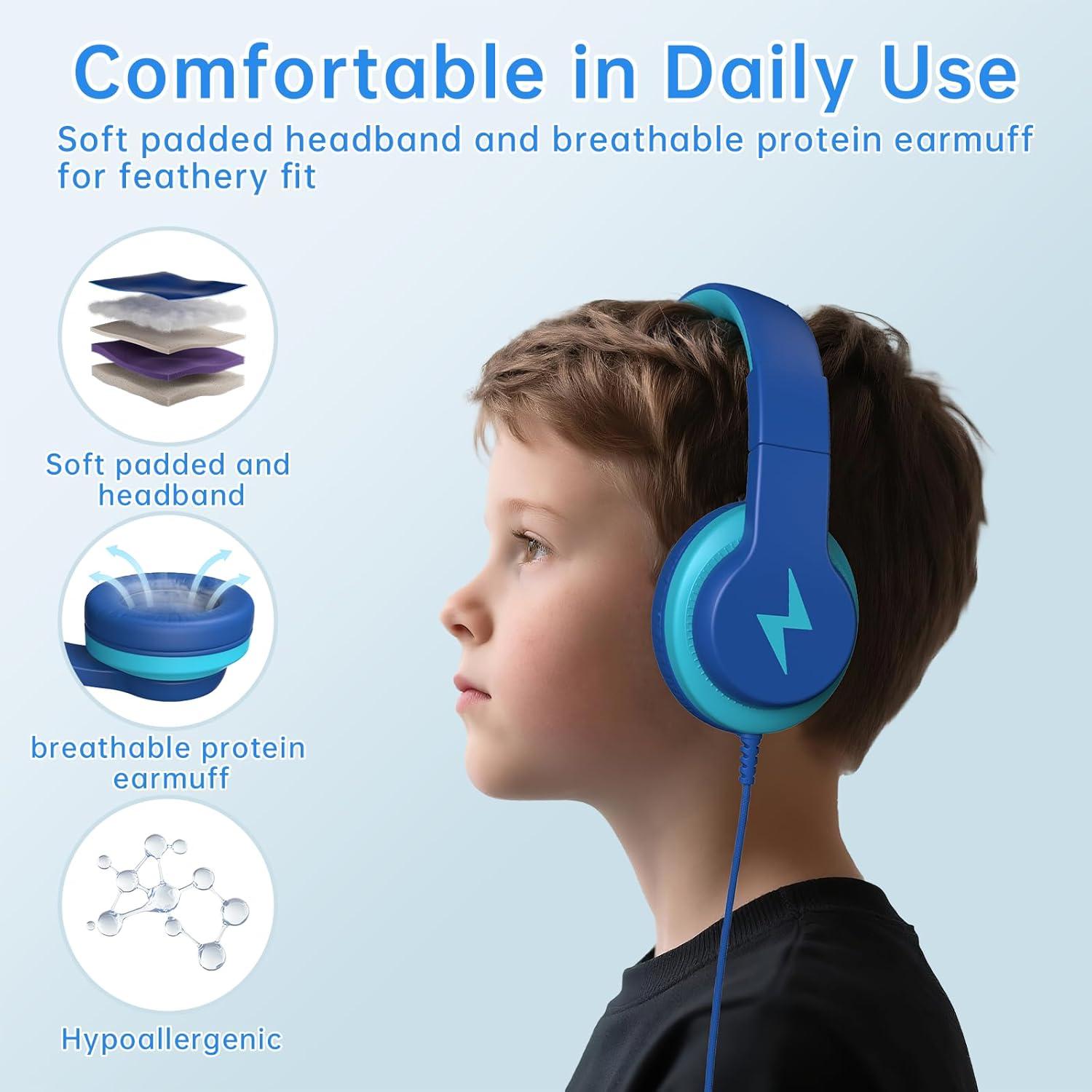 [ Friendly Hearing Protection ]:Our headphones for kids have safe volume limit, 40MM audio driver, ensure clear sound quality three-dimensional. Effectively reduce high volume, protect children's hearing. The kids headphones with cord are an ideal choice for studying, listening to music, watching movies, playing games, traveling and chatting for entertainment.
